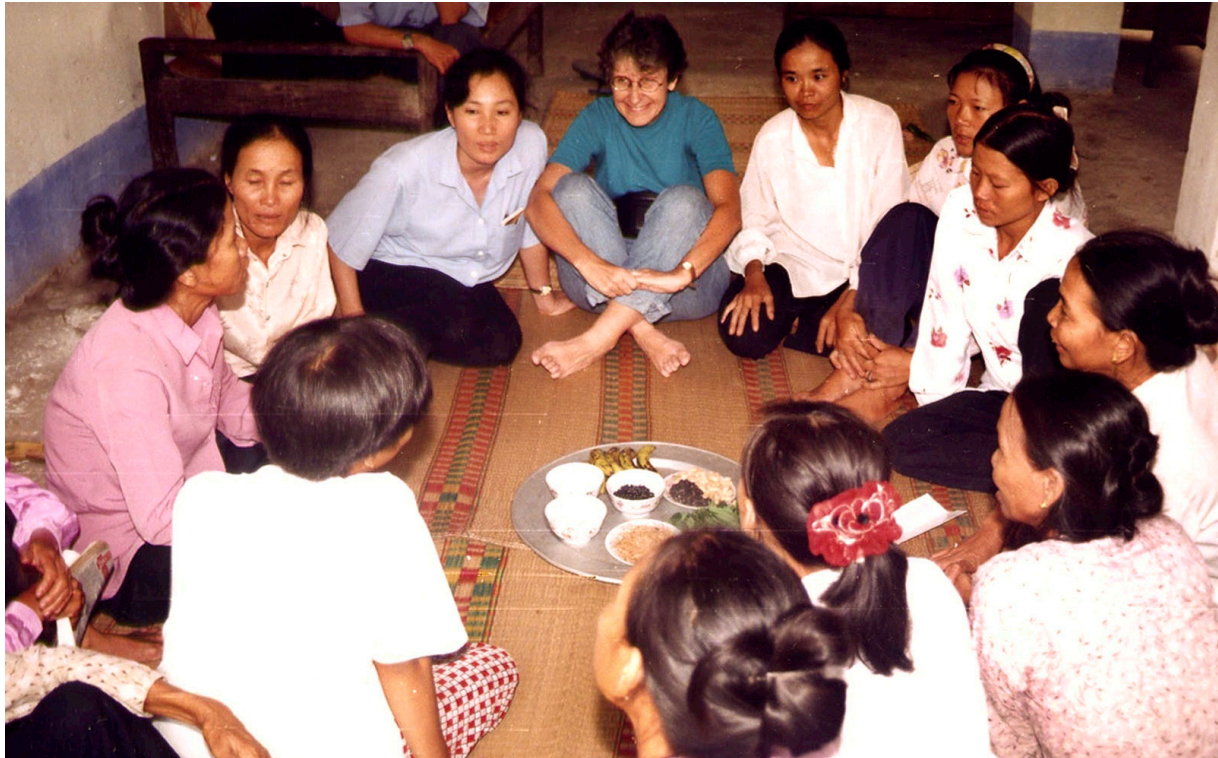Monique Sternin, wife of Jerry Sternin, listening to a discussion on nutrition (Positive Deviance Initiative, Tufts University)