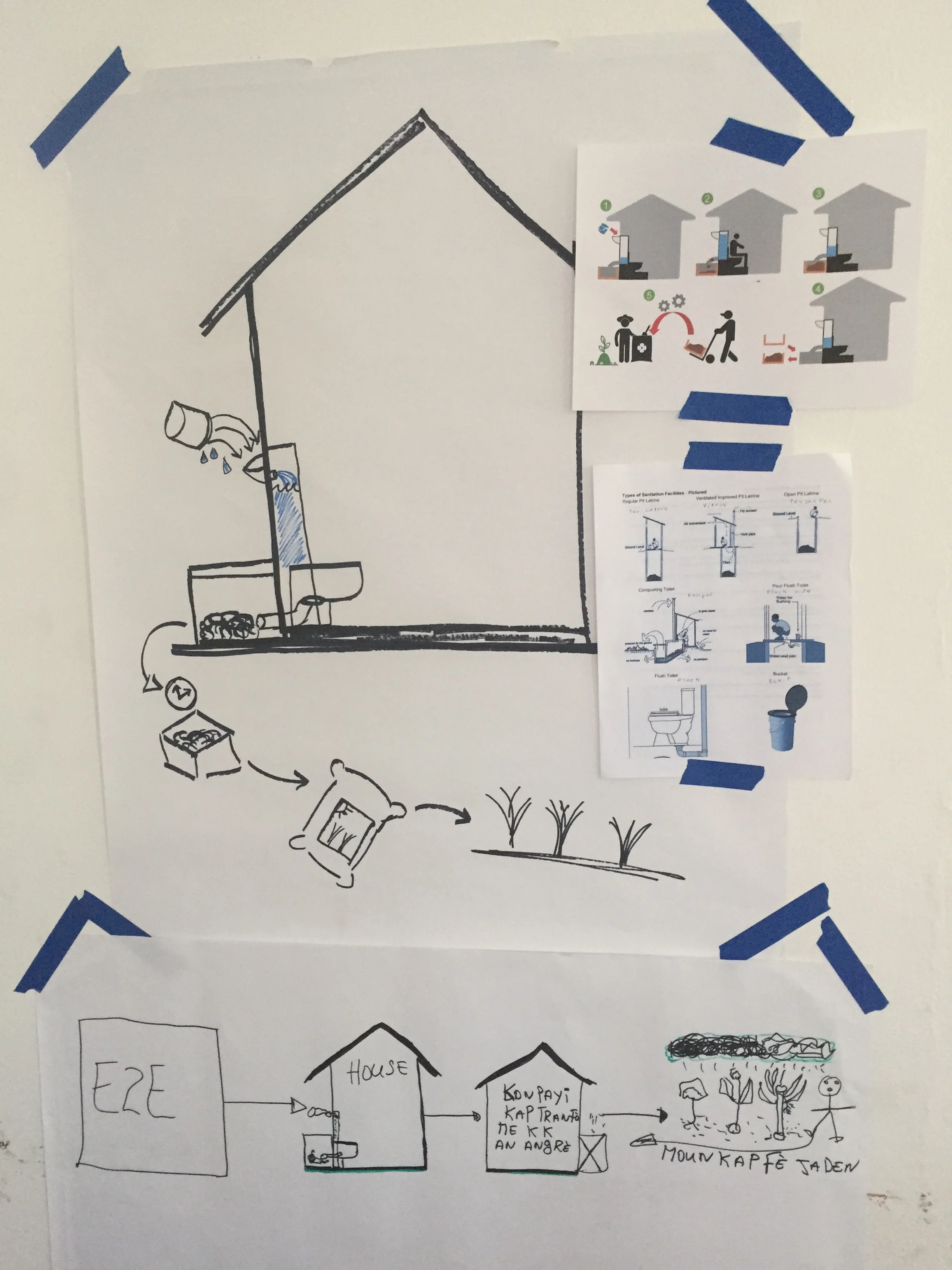Initial brainstorm sketches for the theory-of-change for Ke Poz Twalet